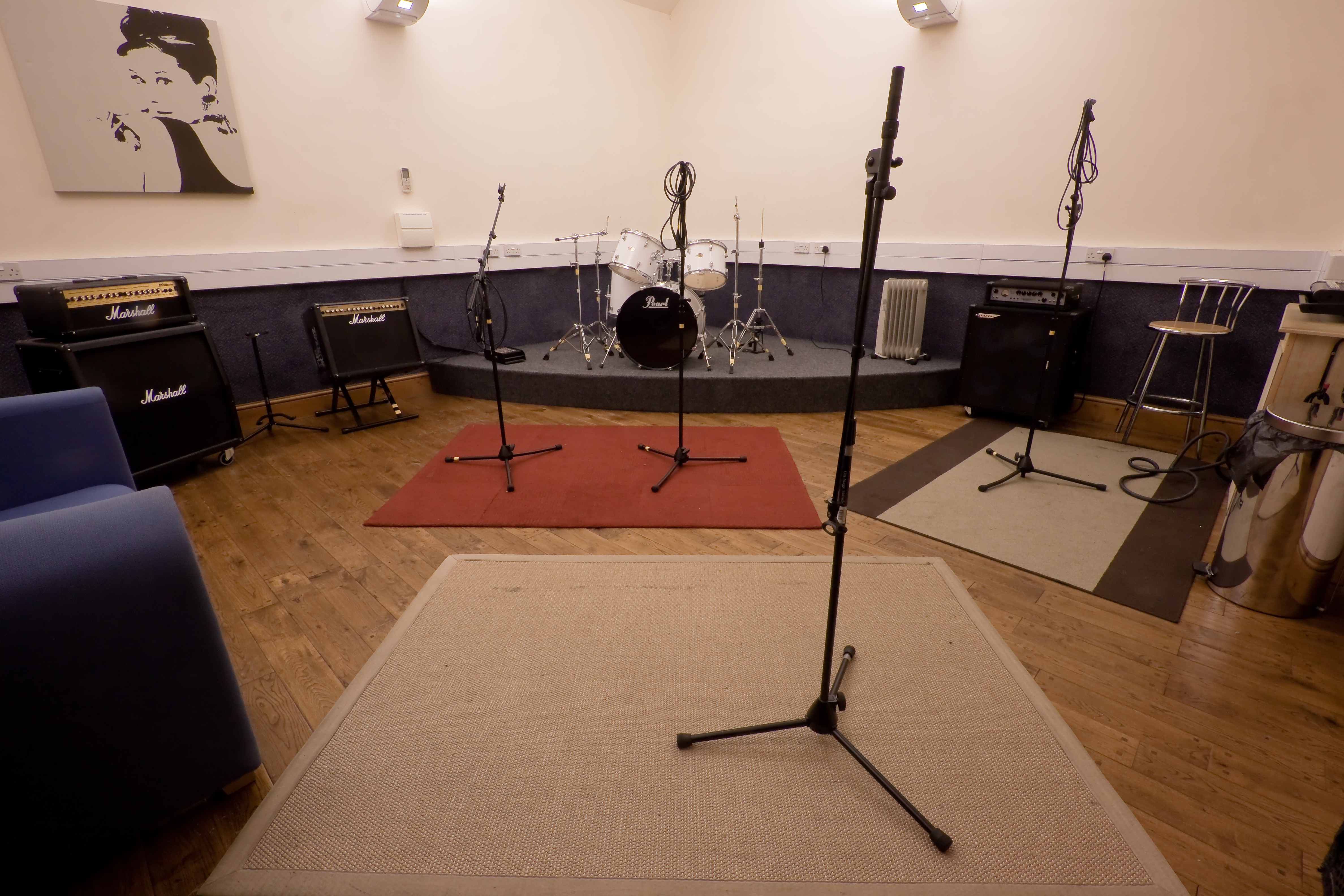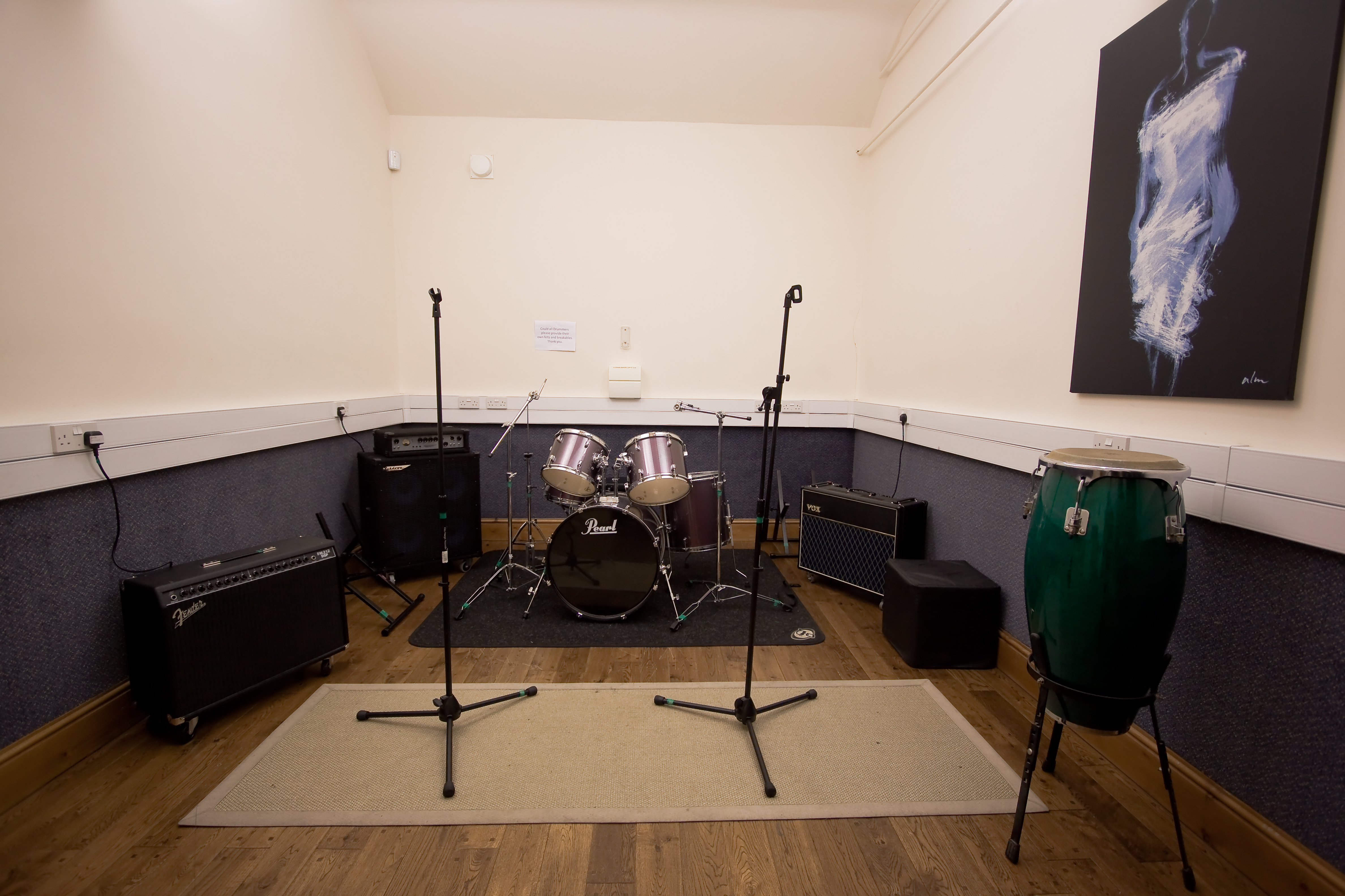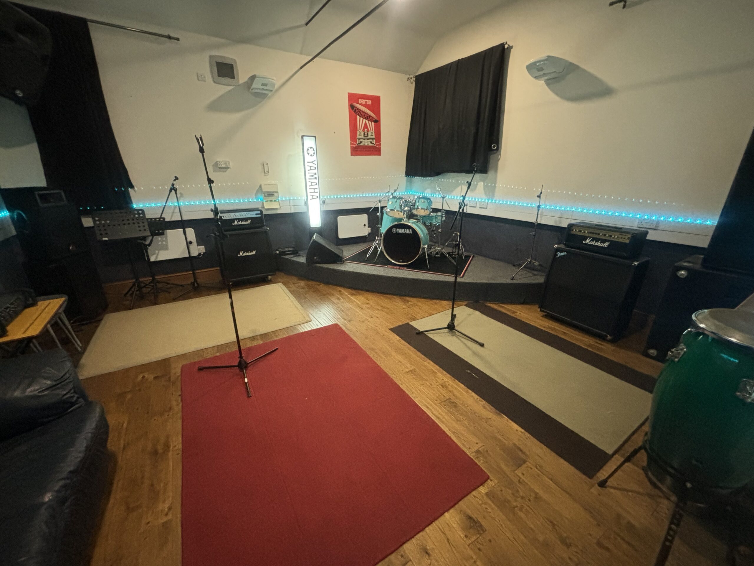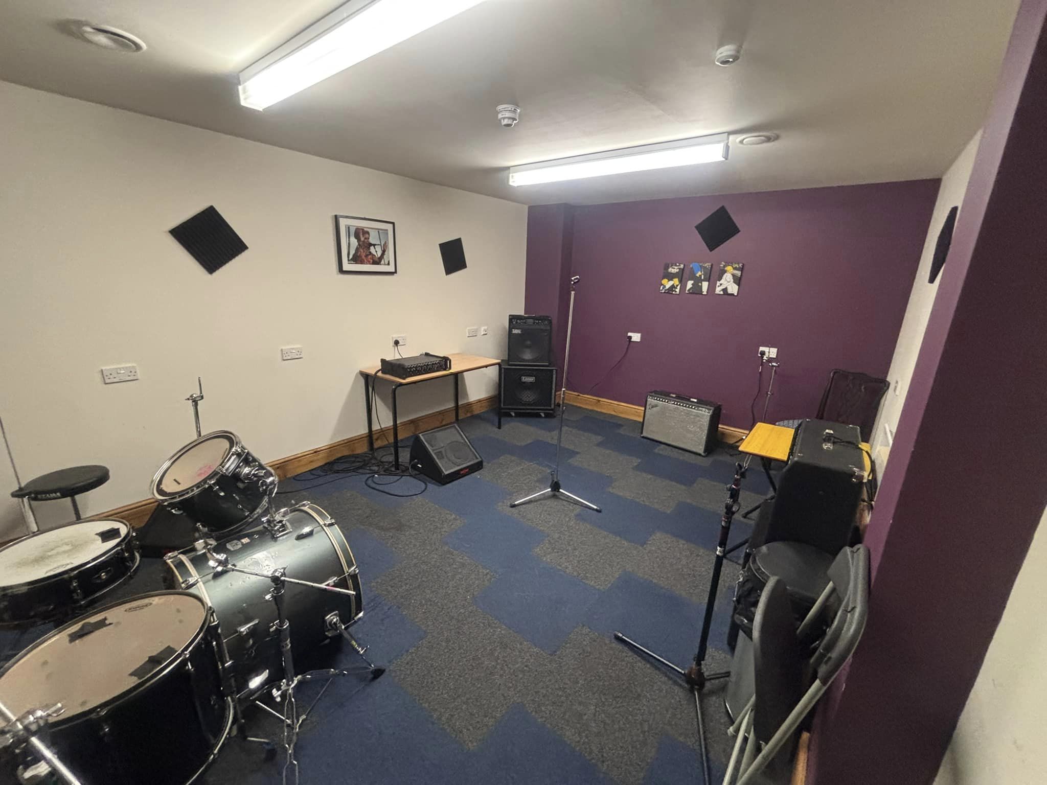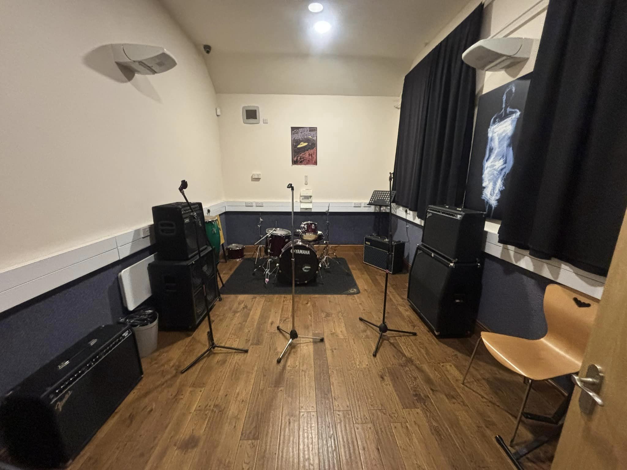 A smaller room which although fully equipped for bands is an ideal space for duos and acoustic performers to write and rehearse.